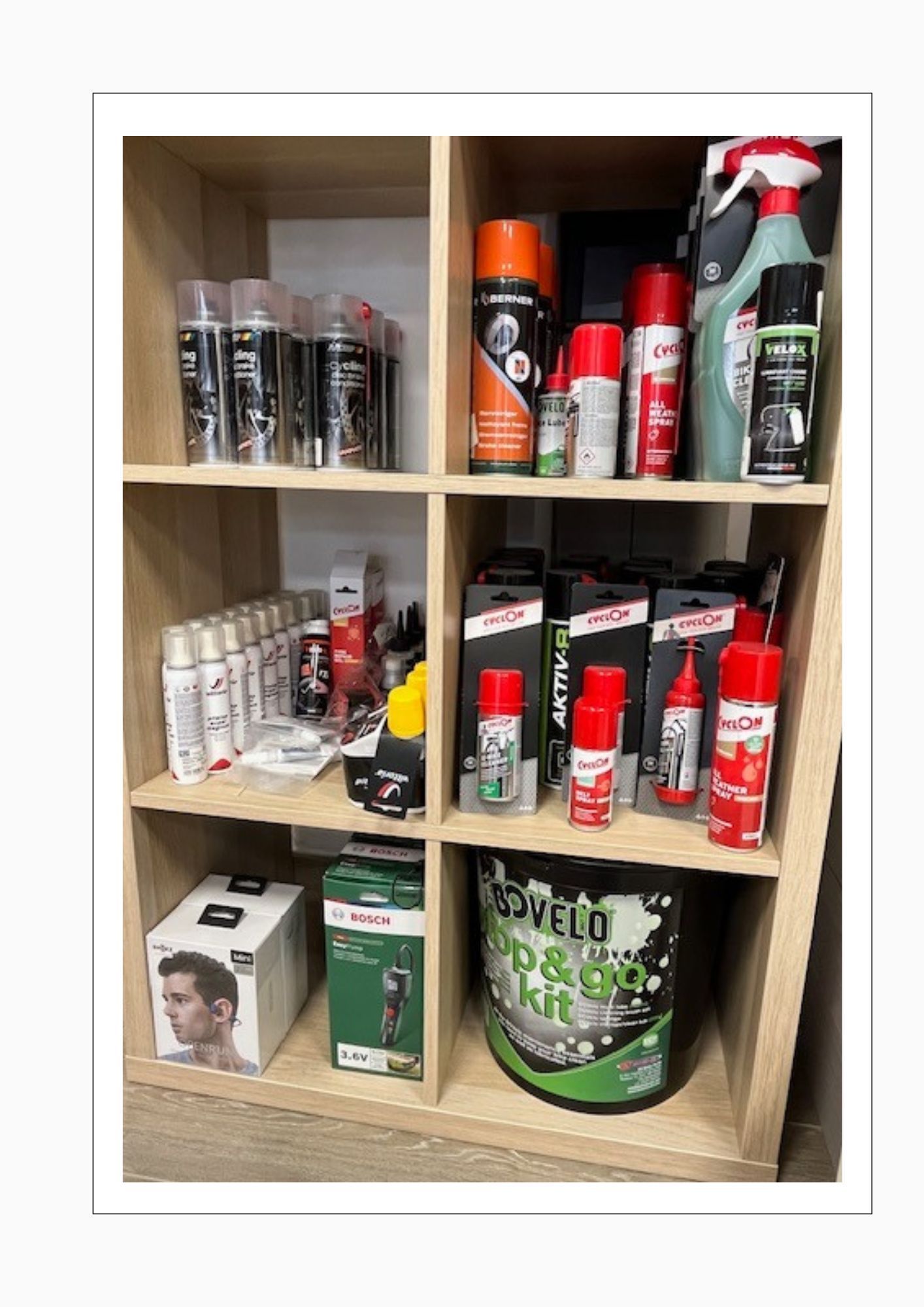 - verkoop van onderdelen, fietsuitrusting en onderhoudsproducten